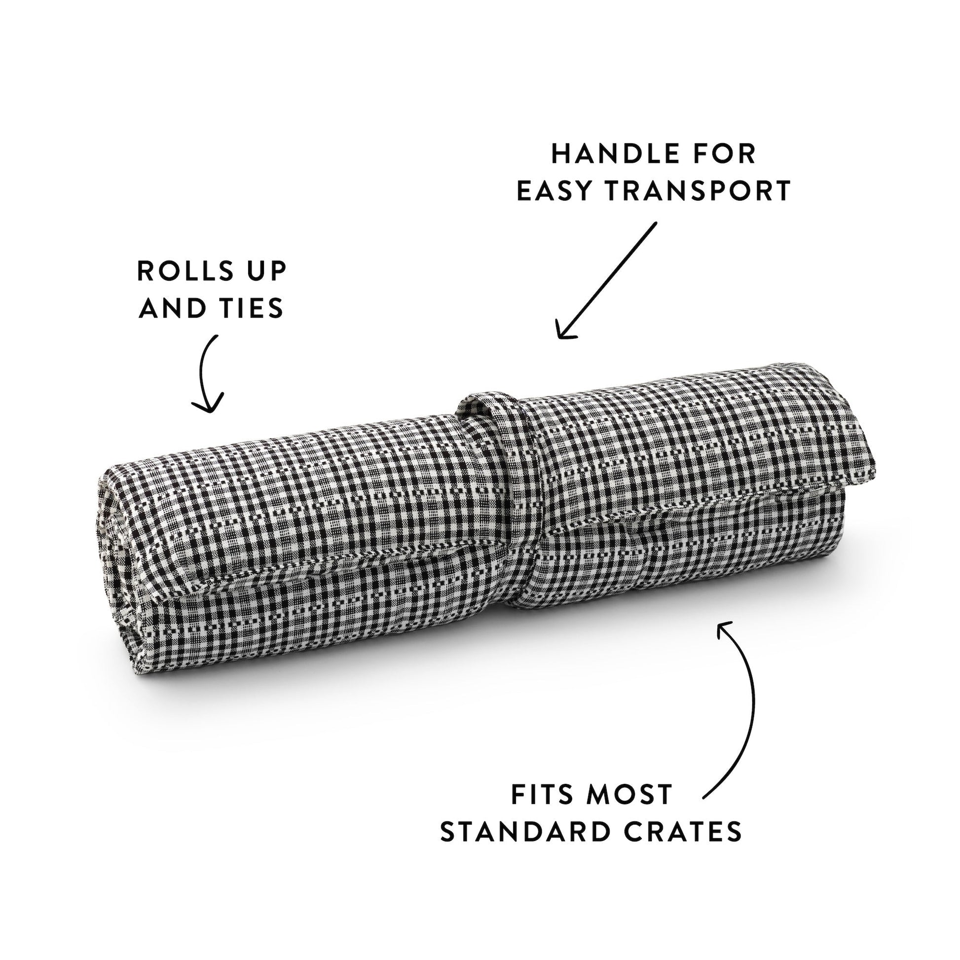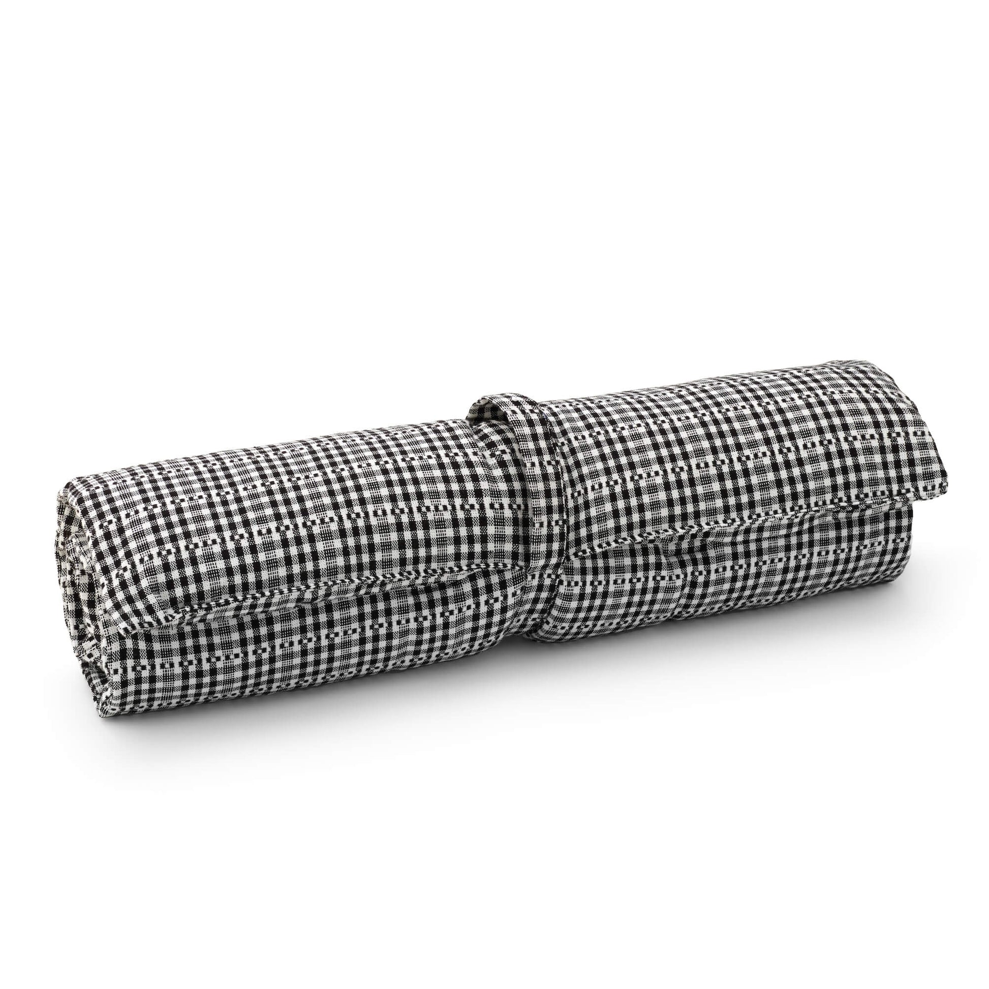 - Travel mat: center pad also rolls up with a handle and ties for easy transport